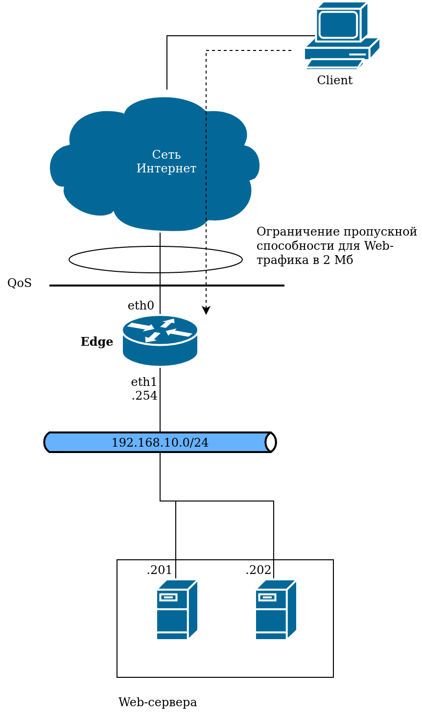 весь трафик проходит по каналу шириной 10 Мбит до Интернет-провайдера;