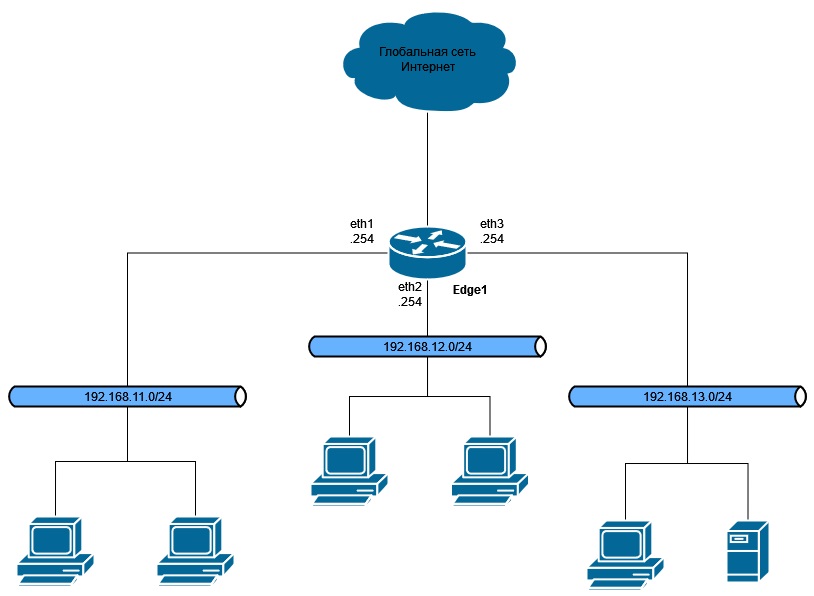 - Просмотр конфигурации интерфейсов ethernet на узле Edge1: