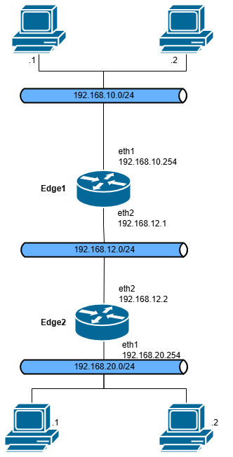- Устройства в локальной сети edge2 имееют шлюз по умолчанию 192.168.20.254.