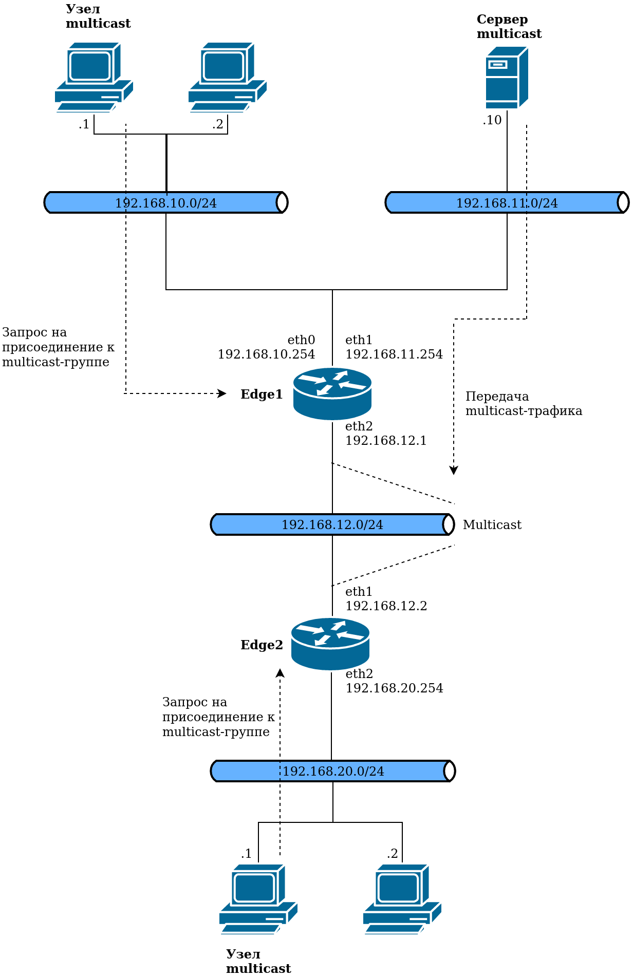 На следующем рисунке показана интрасеть с поддержкой многоадресной передачи.