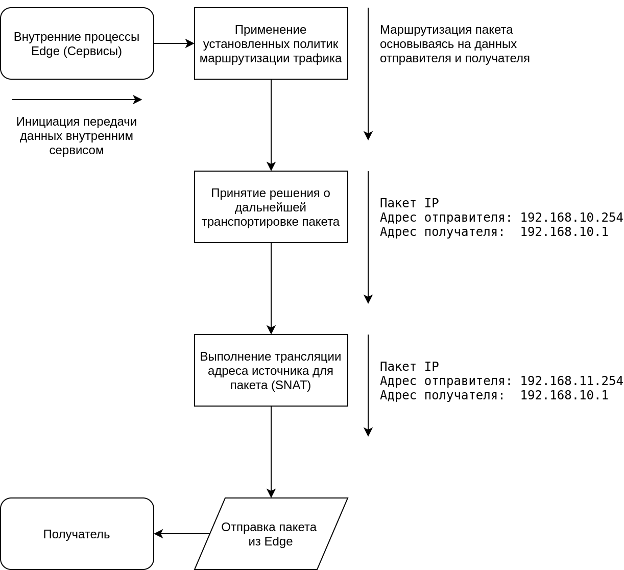 Один из наиболее важных моментов, с которыми следует ознакомиться при работе с межсетевым экраном, это порядок обработки различных служб, которые могут быть настроены в Numa Edge. Если порядок обработки не принимается во внимание, полученные результаты могут отличаться от ожидаемых. На рисунке ниже показан поток трафика через межсетевой экран, NAT и службы маршрутизации внутри Numa Edge.