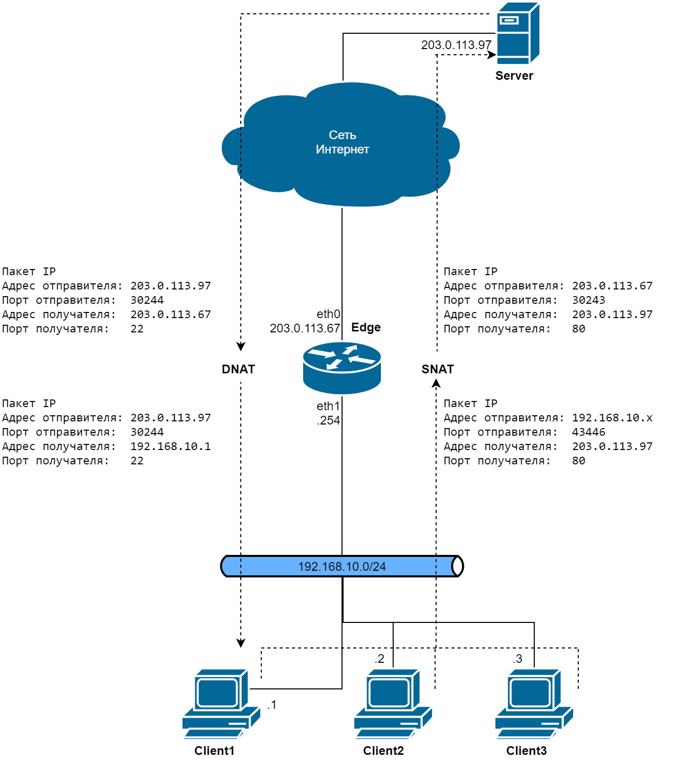 Все нижеописанные сведения также относятся и к SNAT, так как макскировака является его частным случаем.